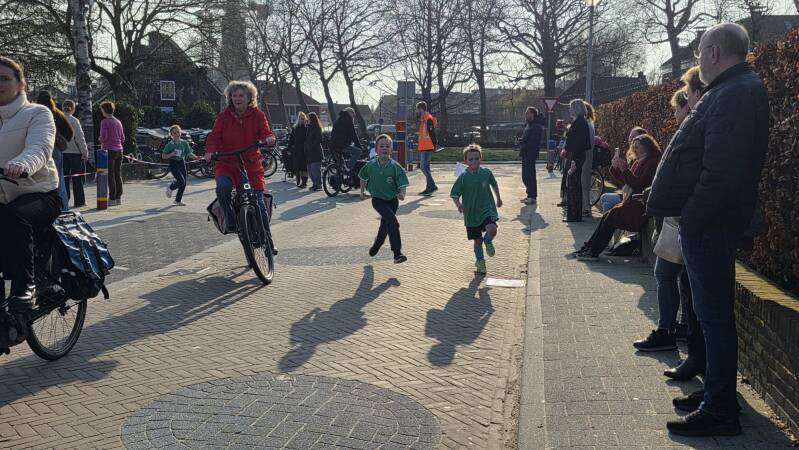 Langs het parcours stonden veel leerlingen, ouders en andere supporters om de deelnemers aan te moedigen. De leerlingen zetten zich volop in en bleven enthousiast doorzetten tijdens de loop.